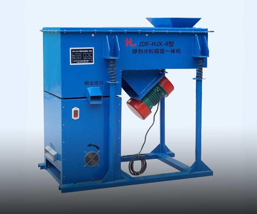 This machine can separate the screened flux into three types: usable flux, coarse slag, and dust. They flow out from different outlets and then pass through a magnetic separation device to remove iron filings. It can screen 800KG of flux per hour
